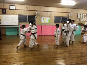 ✨道院の中に入り、基本の続き、鎮魂行、道院長の法話、盟杯、今年一年の目標を1人ずつ発表し、保護者の方が作ってきてくださった、おうどんをみんなで食べて終了となりました